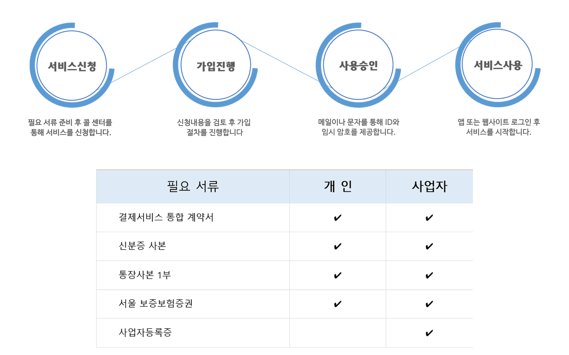 개인이나 사업자 상관없이 앱을 통해 결제가 가능합니다.